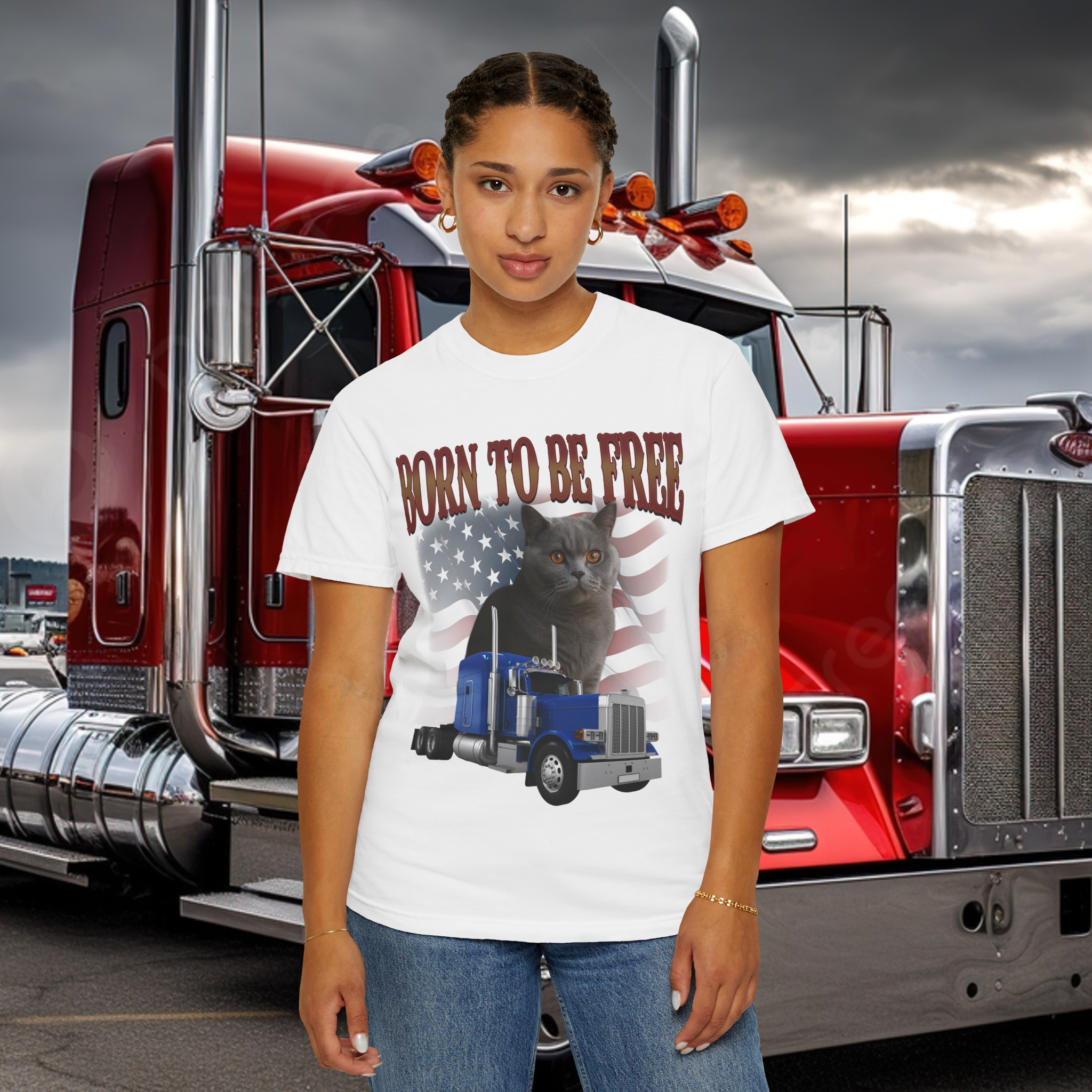 I bought this tee for my husband, and he absolutely loves it! The cat portrait looks just like our British Shorthair, and the American flag background really pops.