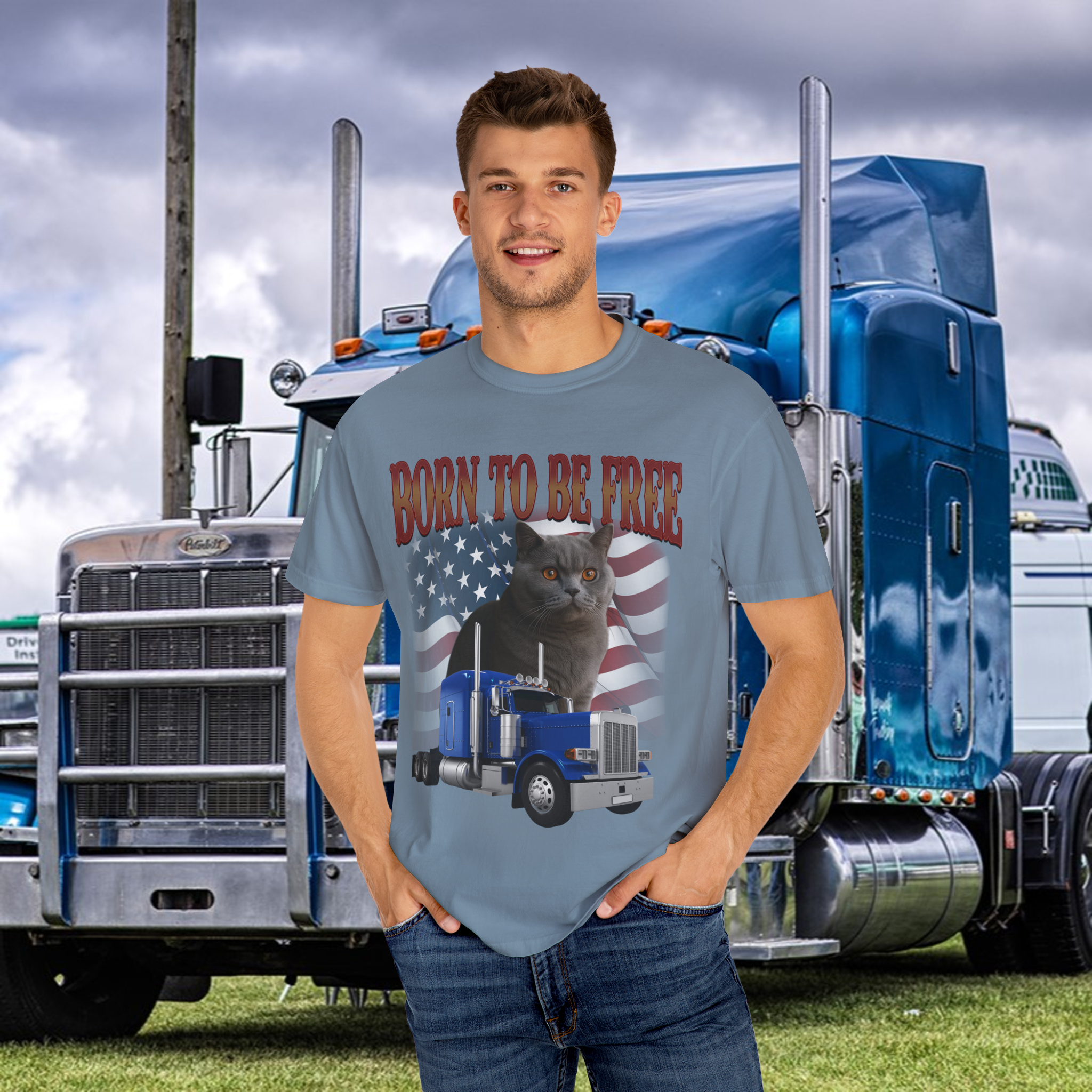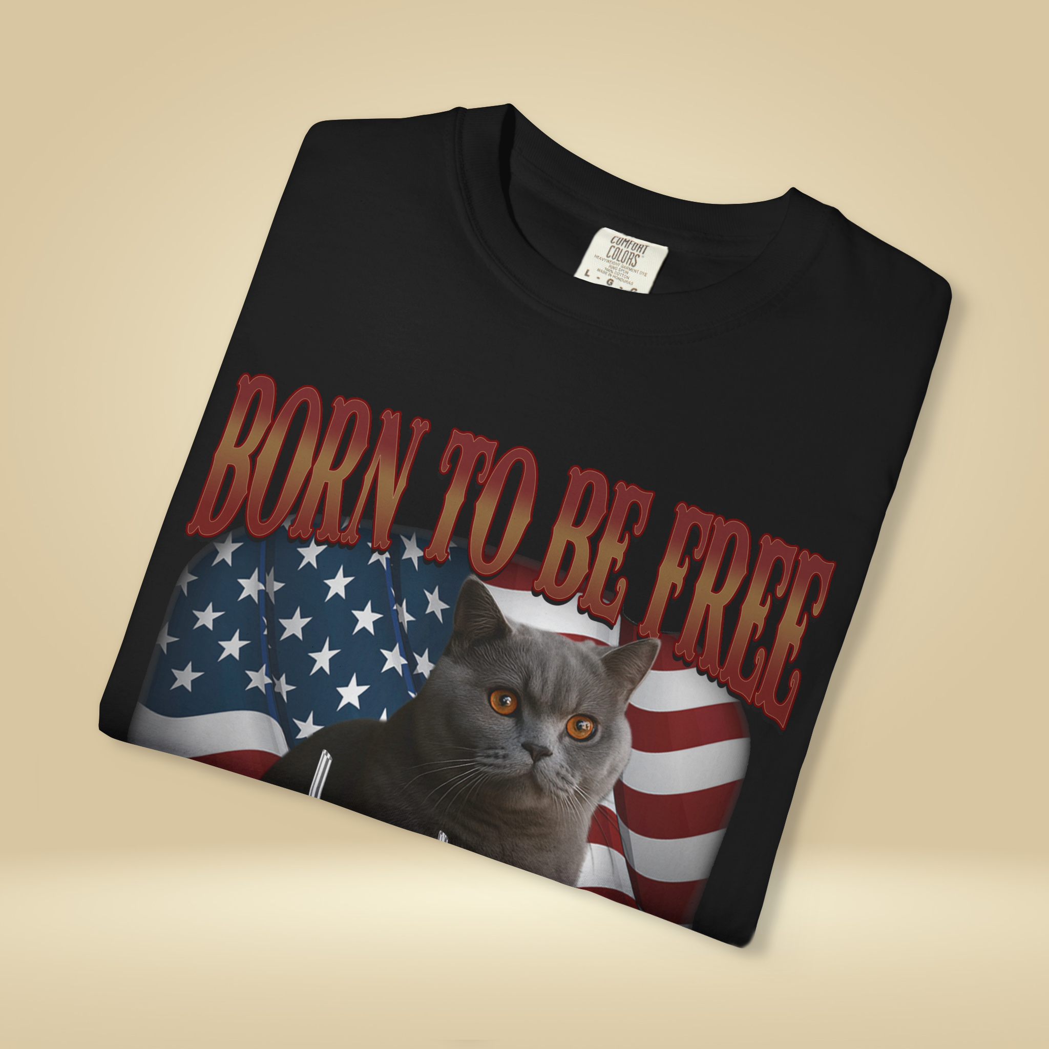 I bought this tee for my husband, and he absolutely loves it! The cat portrait looks just like our British Shorthair, and the American flag background really pops.